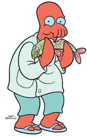 The Decapodians are a race of sapient, lobster-like creatures from Decapod 10. Like lobsters or crabs on Earth, Decapodians have no bones. Instead they have an exoskeleton—a hard, chitinous shell which gives their body the rigidity needed to move about. They may vary in colour from pink, red, or brown, and all hues in between. They have claws instead of hands and feet, and have a row of four small finger-like flaps that cover their mouths. Decapodians are very strong, and their claws are sharp enough to cut steel bars and similarly hard things. Decapodians are cold-blooded, the blood appears to be light purple in color. When in danger, a decapodian can spray a 20’ radius cloud of black ink to obscure its escape. This defense is only truly effective underwater, as online it only manages to make a mess rather than an effective defense.